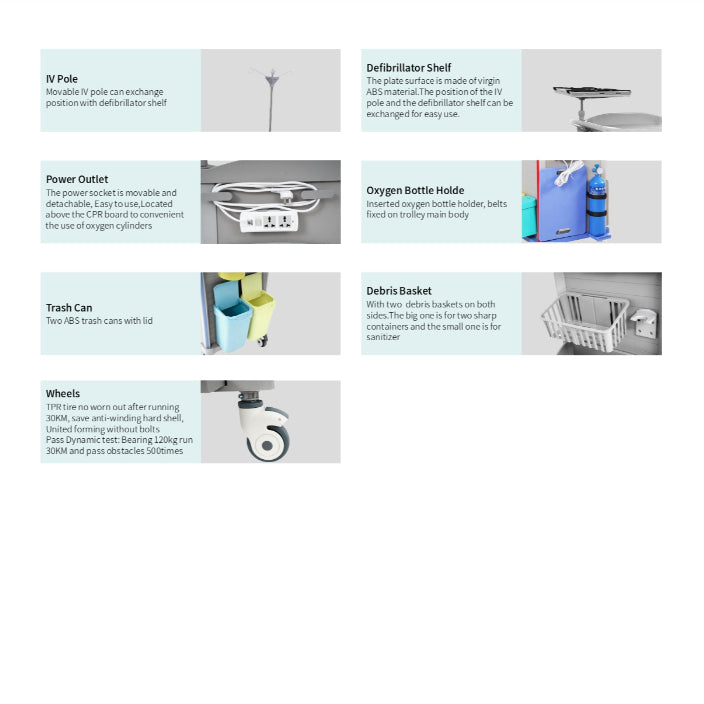 7. ชั้นวางเครื่องกระตุกหัวใจ วัสดุ ABS สามารถสลับต าแหน่งระหวางชั้นวางและเสาน ้าเกลือได้ตามต้องการ