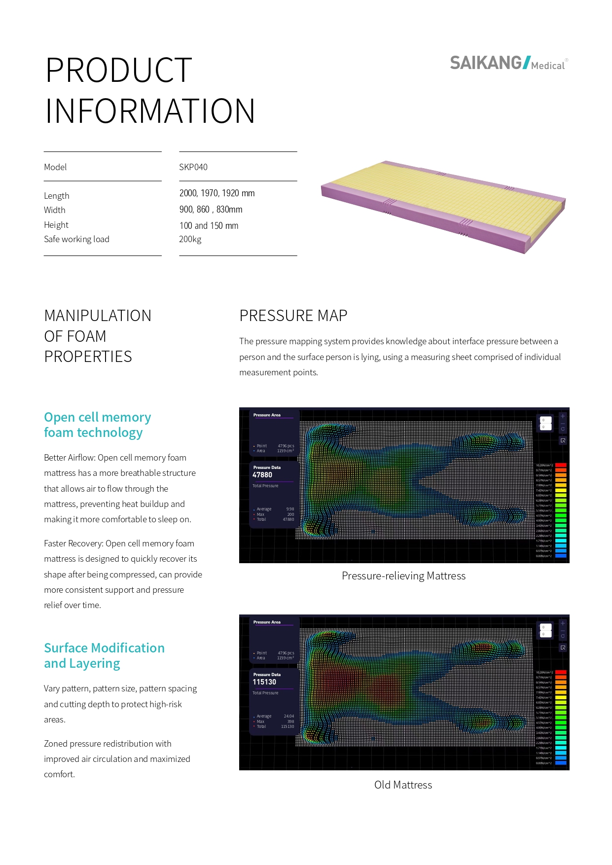 Saikang Hospital Matress ที่นอนโฟมกระจายแรงกดทับ สำหรับผู้ป่วยที่มีความเสี่ยงที่จะเกิดแผลกดทับ [1970x860mm] ความหนา 15mm