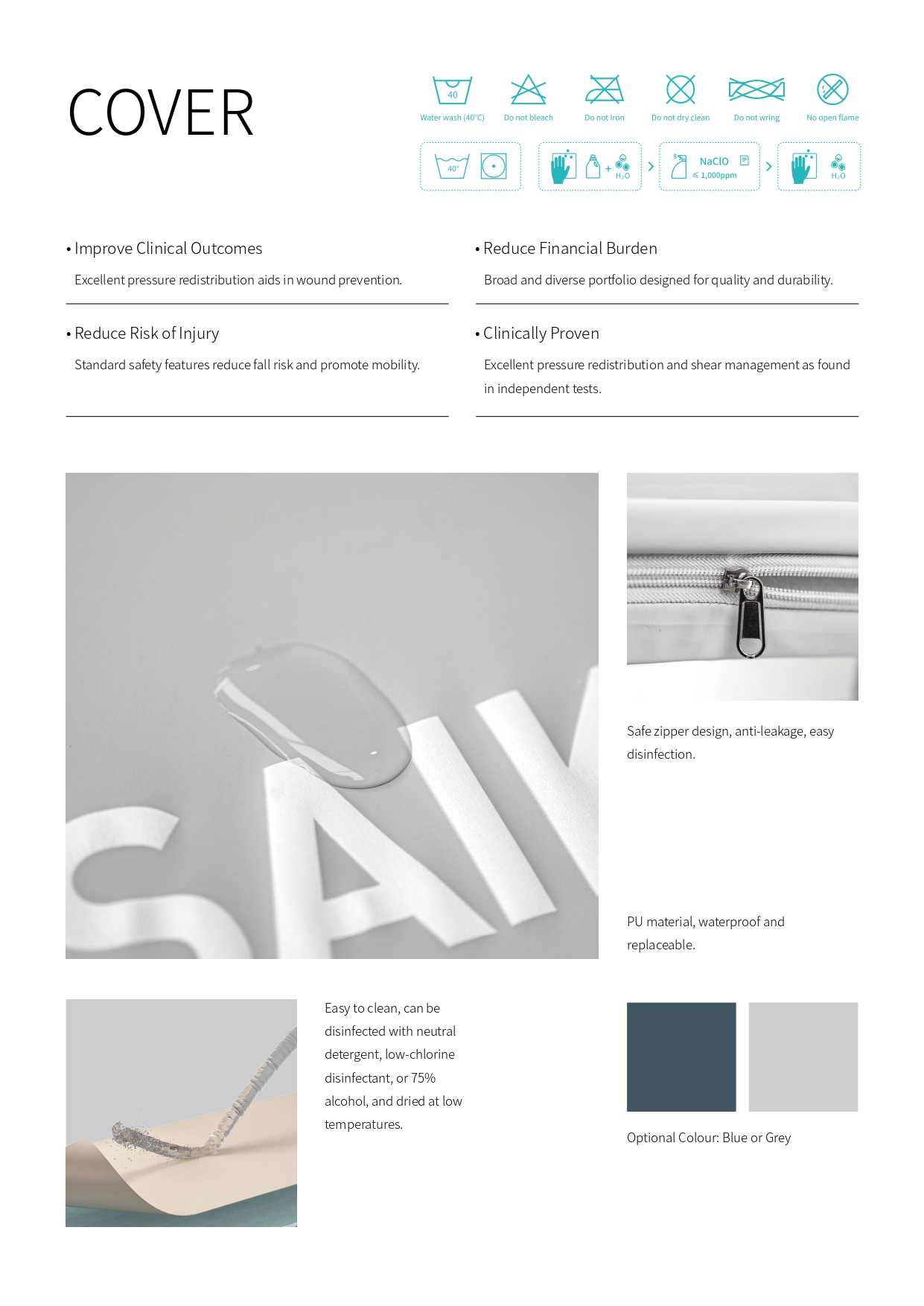 5. ปลอกคลุมที่นอนสีน้ำเงิน ( ซิปซ่อน ) ทำจากวัสดุ PU กันน้ำ และง่ายต่อความทำความสะอาด