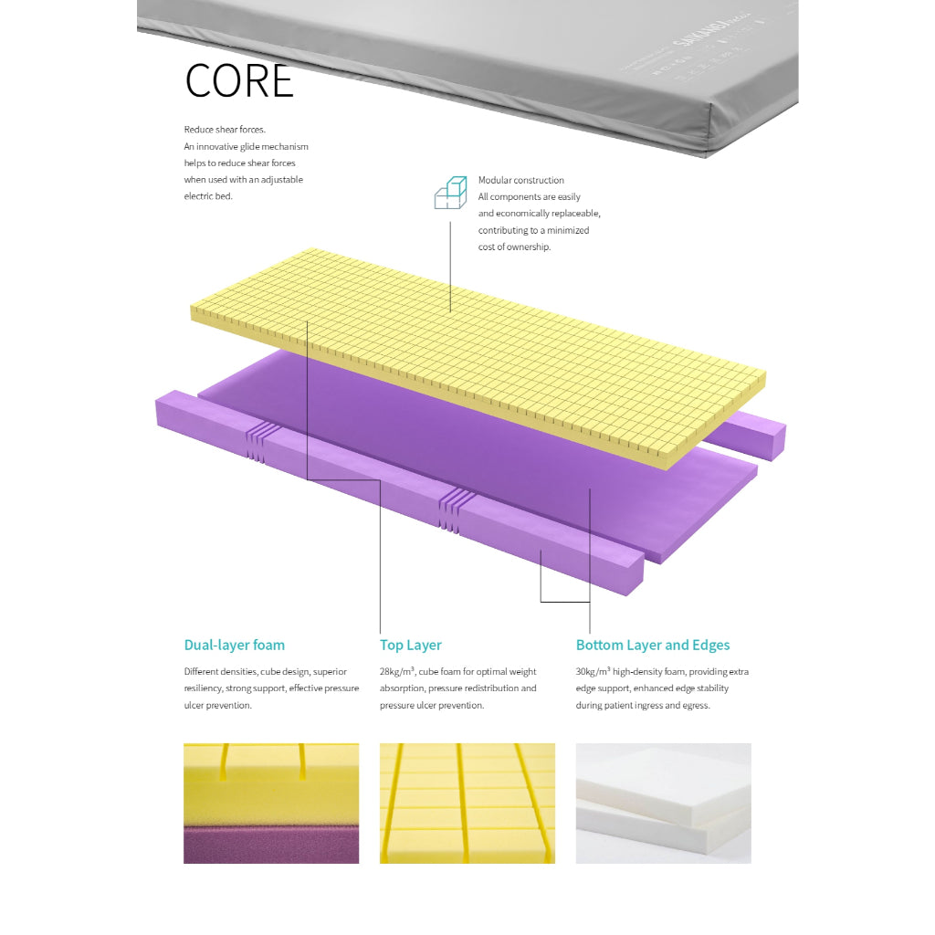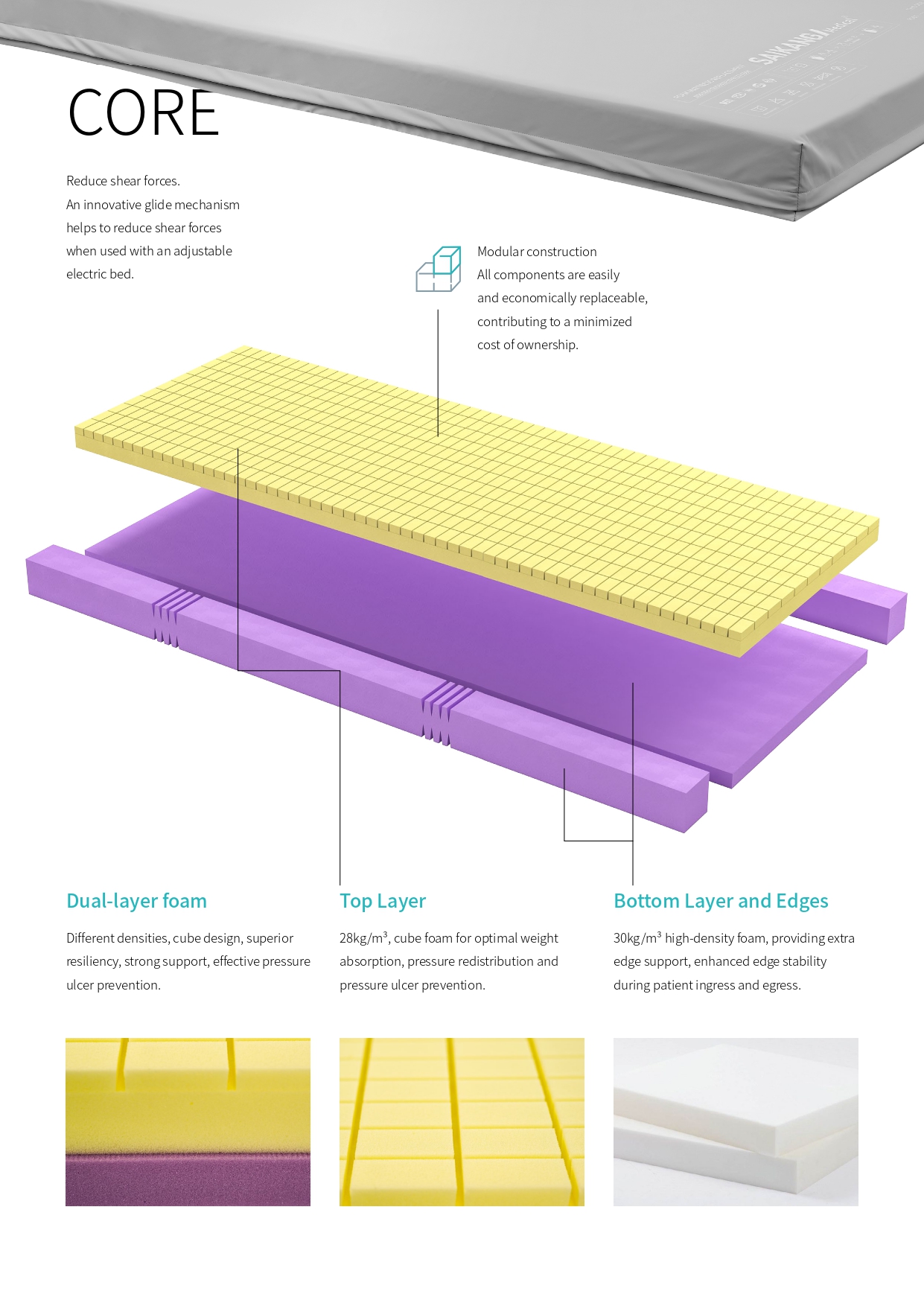 4. ชั้นที่นอนโฟมส่วนที่มีความหนาแน่นสูงช่วยทำให้ที่นอนมีความมั่นคง และลดโอกาสในการเกิดอุบัติเหตุการตกจากที่นอนของผู้ป่วย