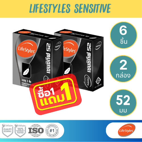 (1 แถม 1) LifeStyles Sensitive 52 ถุงยางอนามัย ผิวเรียบ ขนาด 52 มม. บรรจุ 1 กล่อง (3 ชิ้น)