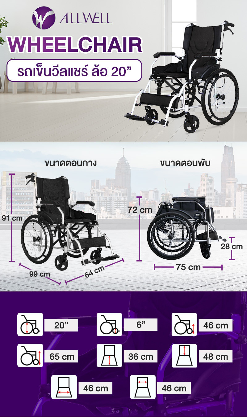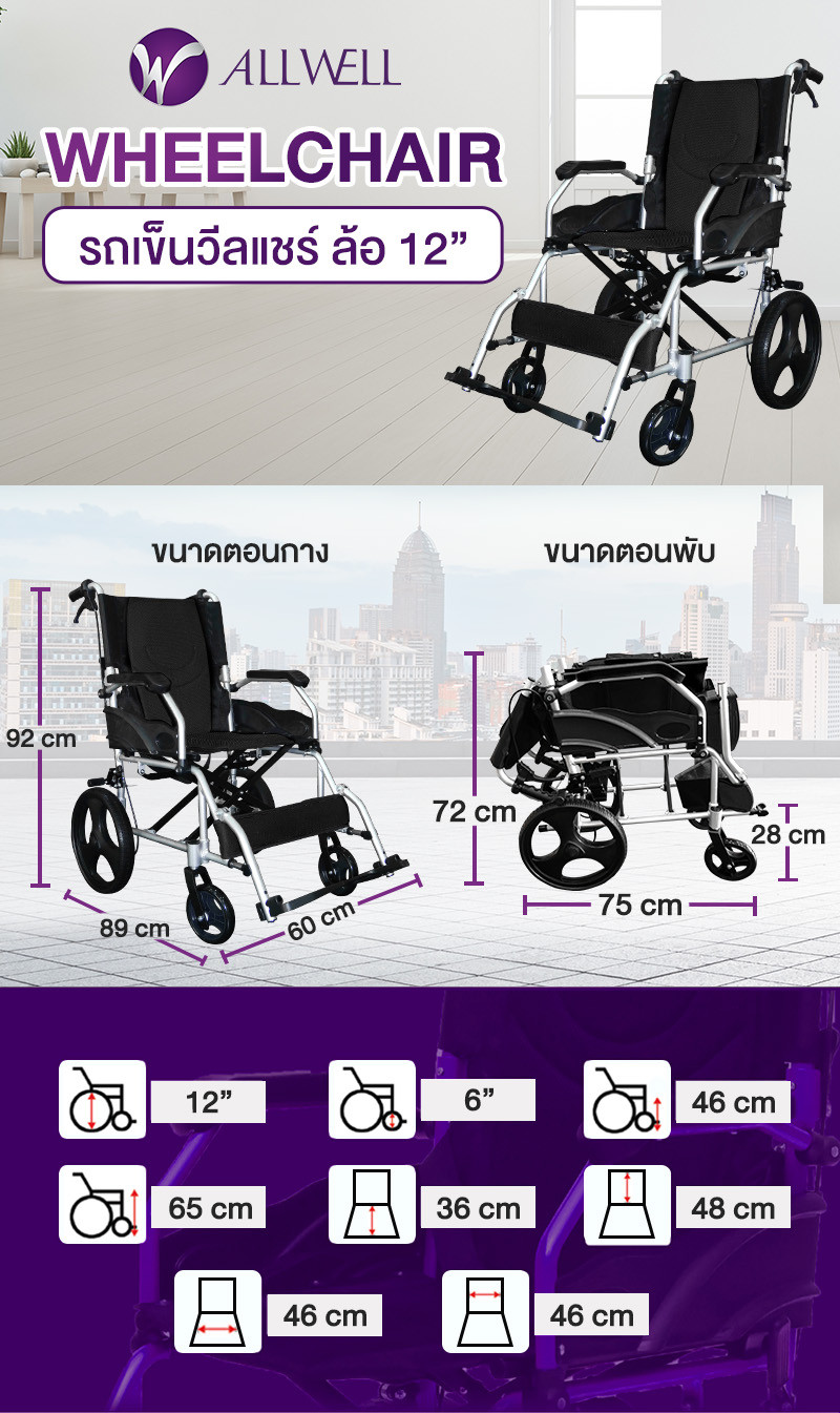 ️ ALLWELL รถเข็นวีลแชร์ เกรดเครื่องมือแพทย์ รับประกัน 1 ปี รถเข็นผู้สูงอายุ รถเข็นผู้ป่วย Wheelchair