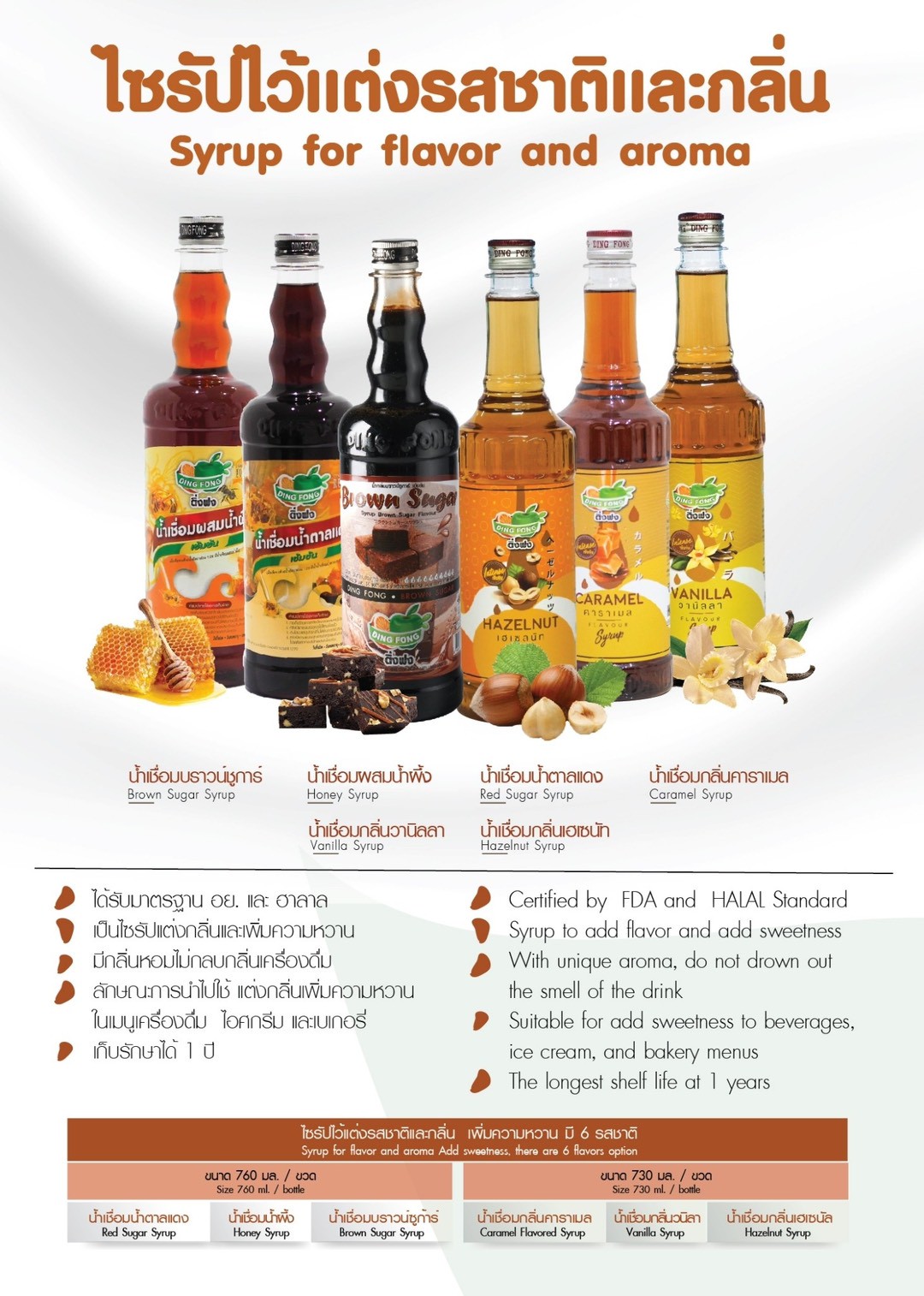 Dingfong Syrups Hazelnut, Vanilla, Caramel ติ่งฟง ไซรัป น้ำเชื่อมวนิลา ไซรัปกลิ่นเฮเซลนัท คาราเมล บราวน์ซูการ์ [760ml]
