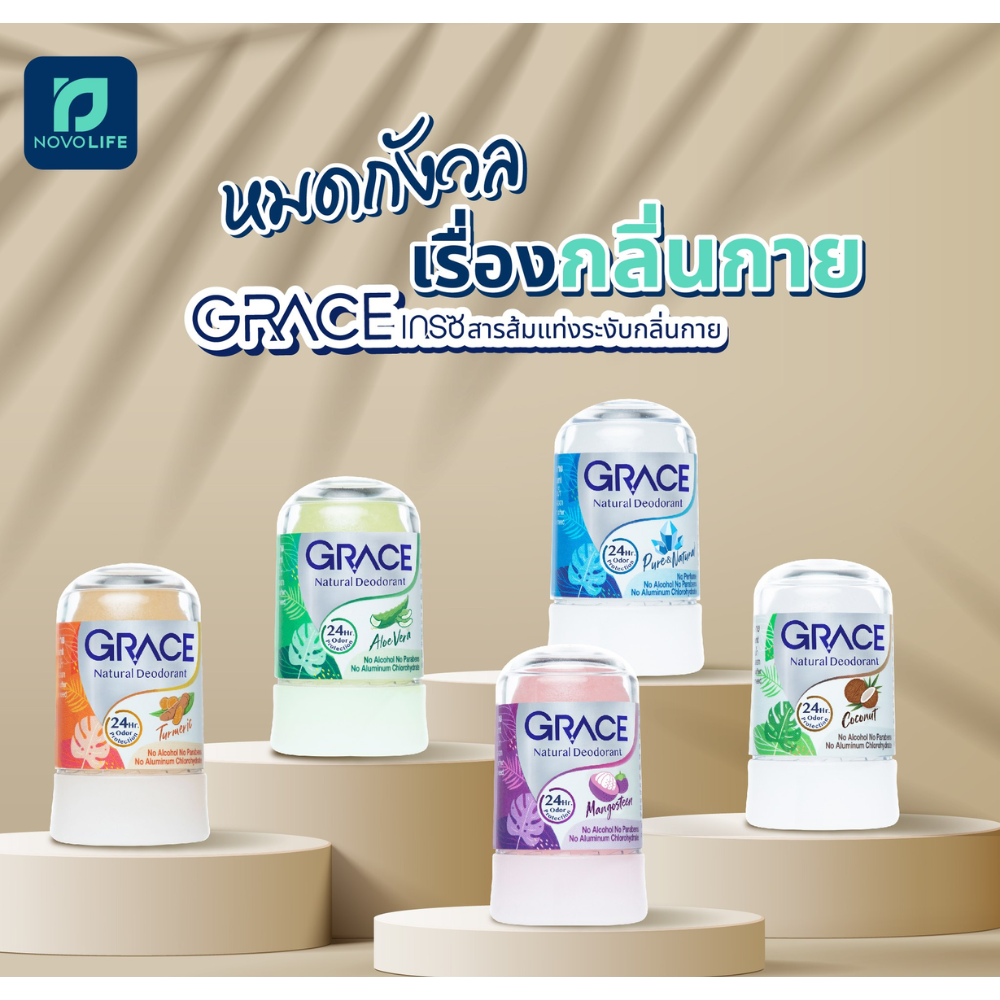 Grace Natural Deodorant เกรซ โรลออนระงับกลิ่นกายสารส้มธรรมชาติ 70g