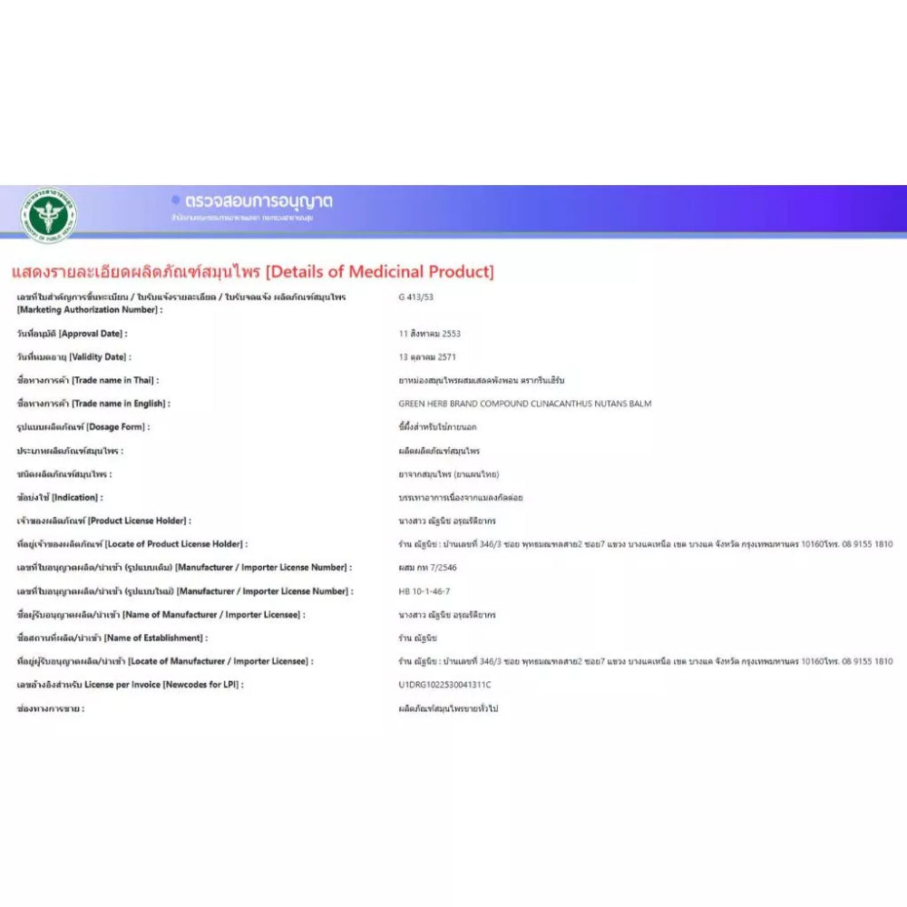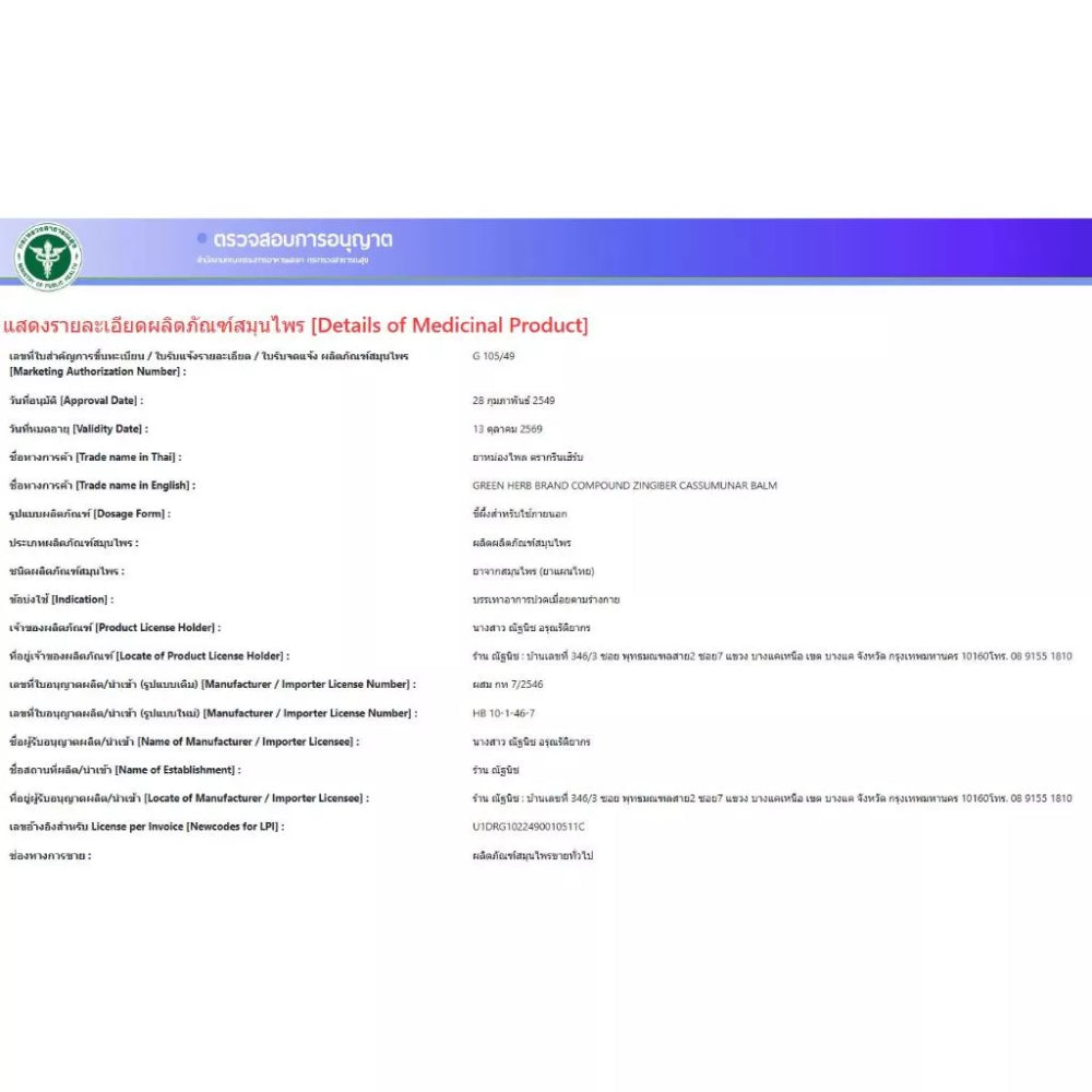 Green Herb ยาหม่องกรีนเฮิร์บ เสลดพังพอน/ไพลสด ขนาด 50 กรัม