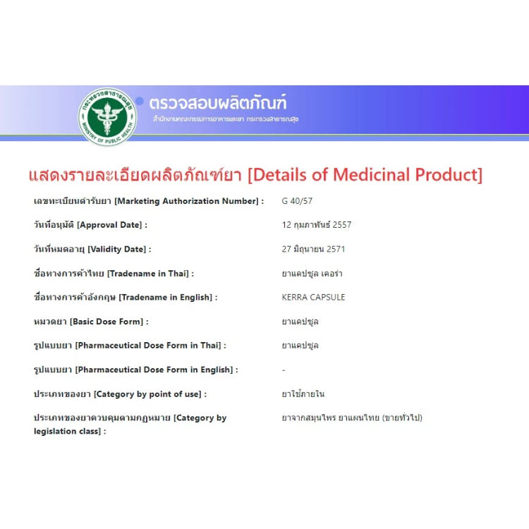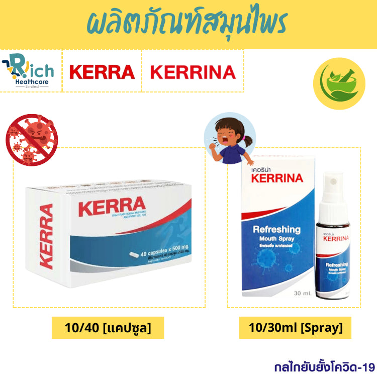 KERRA Kerrina Refreshing Spray เคอร่า ผลิตภัณฑ์สมุนไพรขายทั่วไป แคปซูล อาการไอ ลดเสมหะในลำคอ