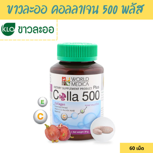 Khaolaor ขาวละออ คอลลา 500 พลัส คอลลาเจนผสมสารสกัดเมล็ดองุ่น วิตามินซีและอี 60 เม็ด/ขวด