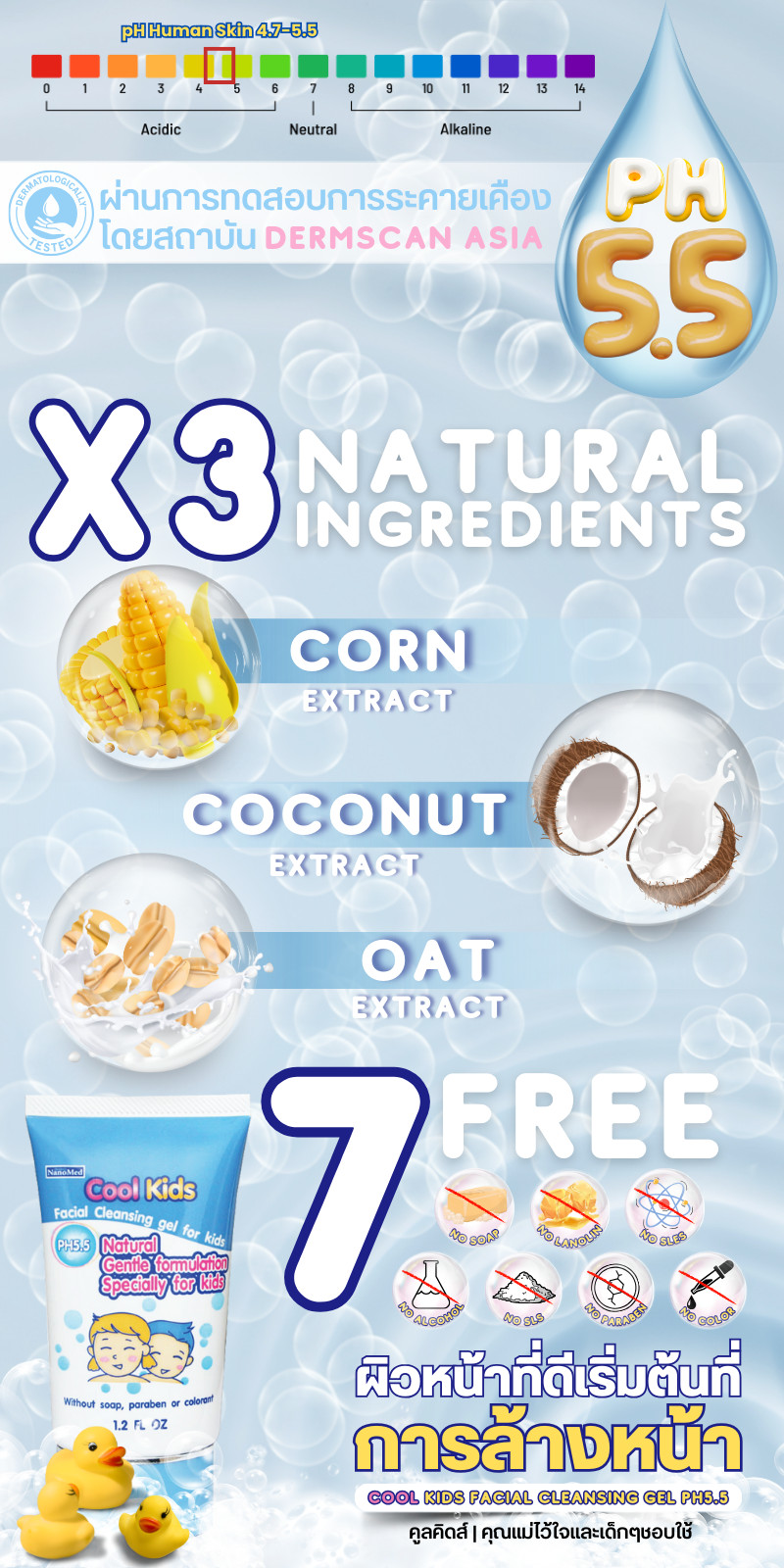 - คุณสมบัติพิเศษเฉพาะตัวใน Cool Kids Facial Cleansing Gel