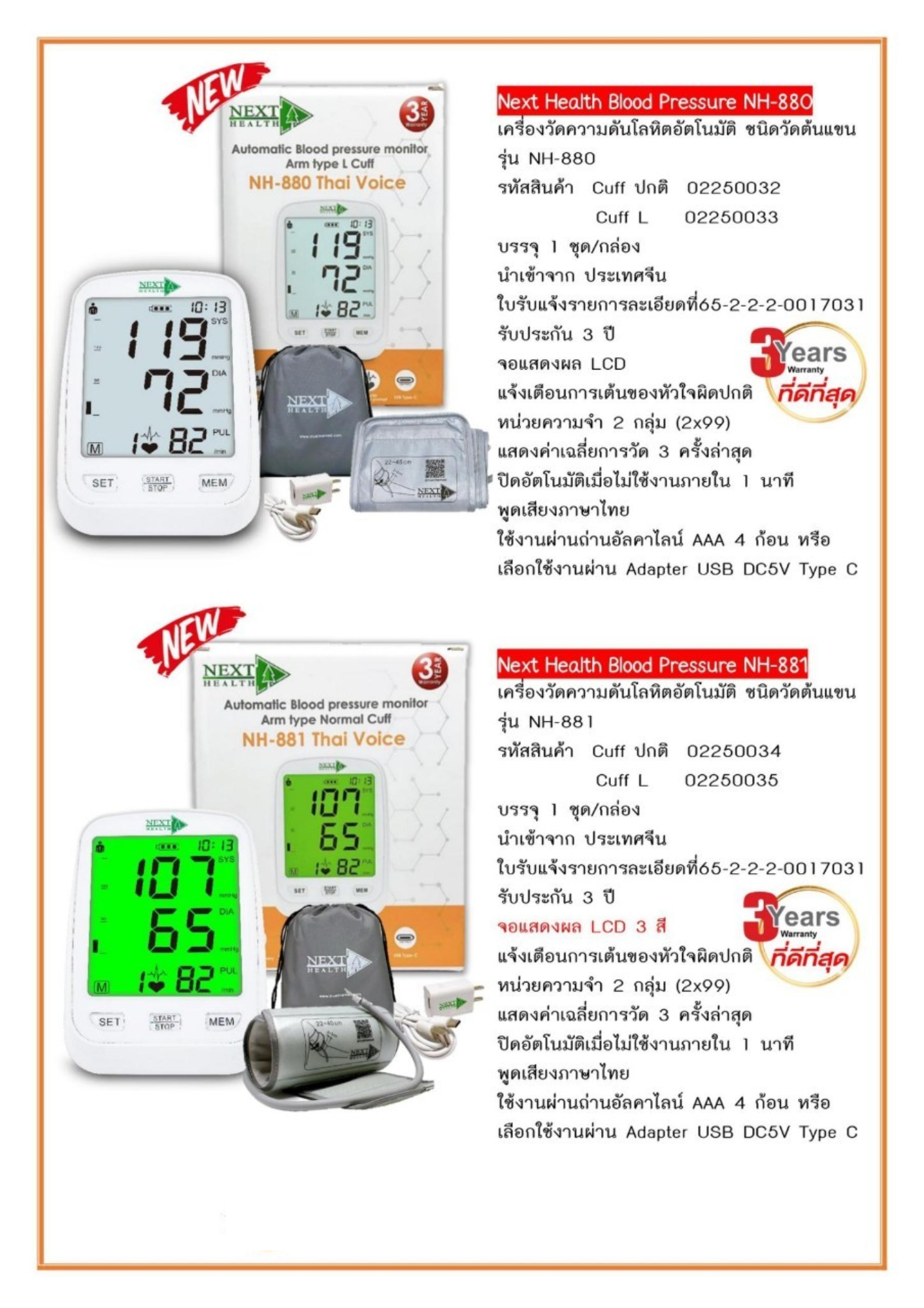 Next Health NH-880 / NH-881 Upper Arm Blood Pressure Monitor with Thai Voice and 3-Year Warranty