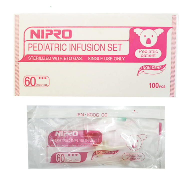 Nipro Pediatric infusion set [Non-DEHP] ชุดสายให้น้ำเกลือเด็ก สีชมพู 60 drops/ml, Sterile [1 Unit]