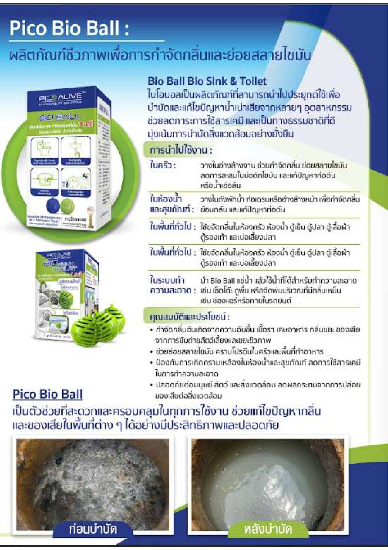 Pico Alive Bio Ball เทคโนโลยี สลายสิ่งปฏิกูล ดับกลิ่นชักโครก ท่อระบายน้ำ อ่างล้างจาน แก้ท่อตัน สำหรับ 30 วัน
