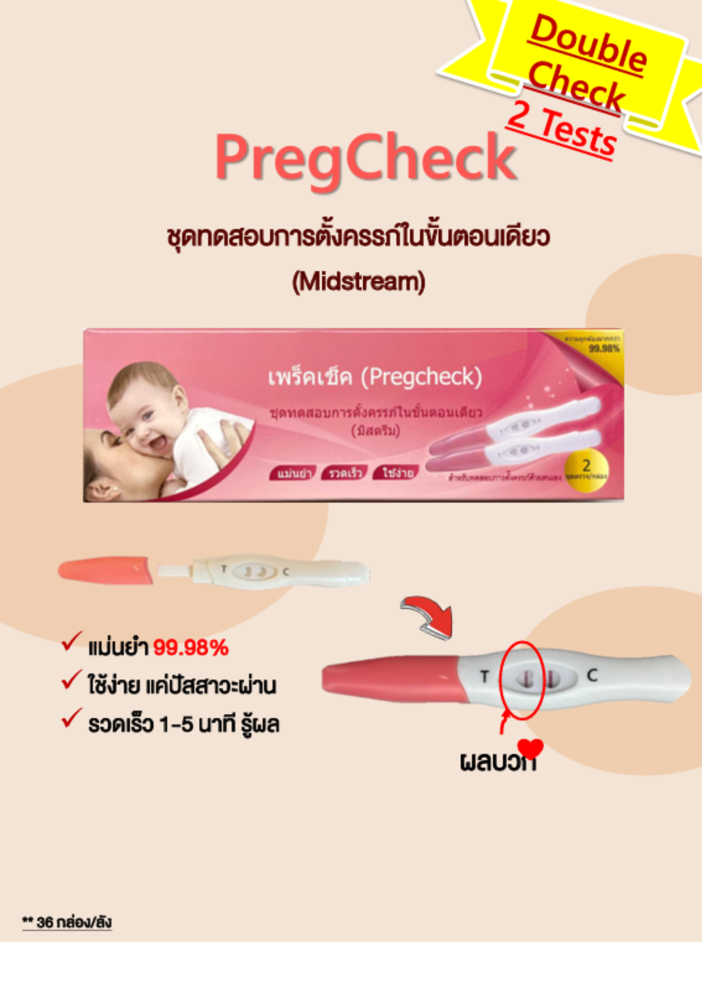 Pregcheck Pregnancy Test ชุดตรวจตั้งครรภ์ ที่ตรวจครรภ์ ชนิดมิสตรีม ตรวจง่ายทำได้ด้วยตัวเองภายใน 5 นาที [2ชิ้น/กล่อง]