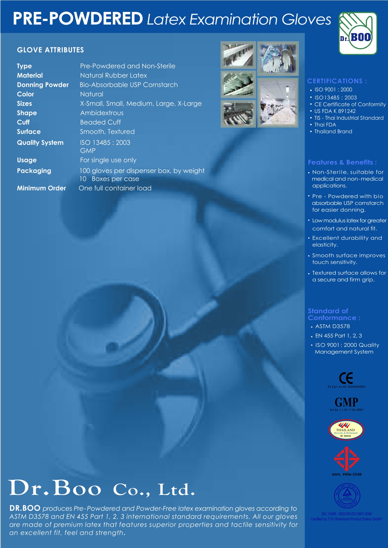 ถุงมือยางธรรมชาติ โปรโกรฟ Pro glove ชนิดมีแป้ง ทำจากยางธรรมชาติ ชนิดไม่ปราศจากเชื้อ