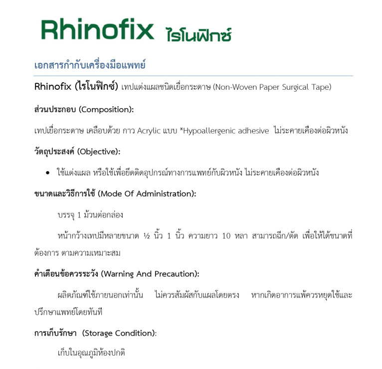 ● ใช้เพื่อยึดตรึงท่ออุปกรณ์ ทางการแพทย์หรือวัสดุทางการแพทย์กับผิวหนัง