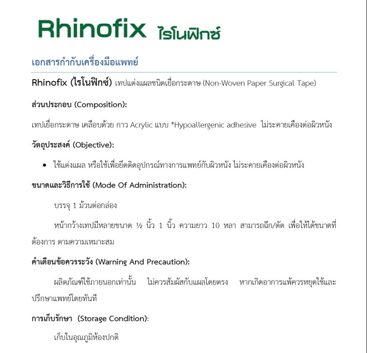 Rhinofix 1/2" x 10Y ไรโนฟิกซ์ เทปแต่งแผลชนิดเยื่อกระดาษ (24 ม้วน/กล่อง)