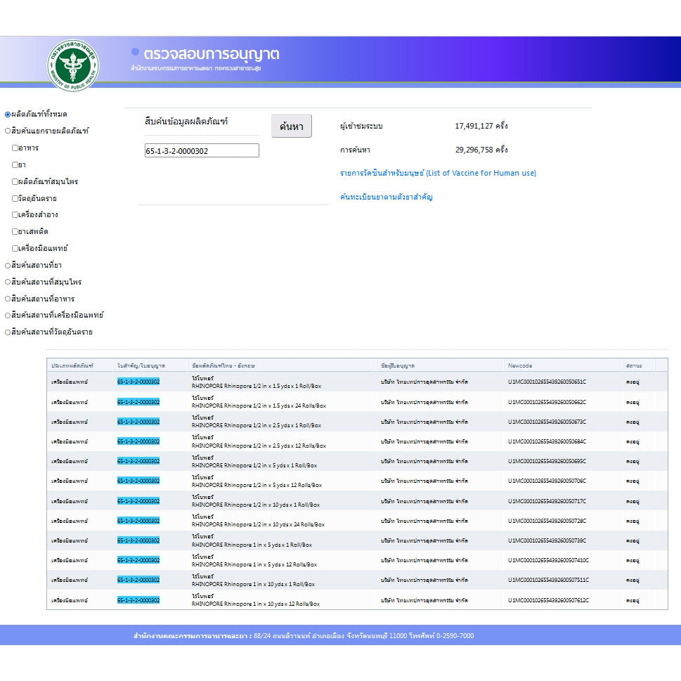 เลข อย. : 65-1-3-2-0000302