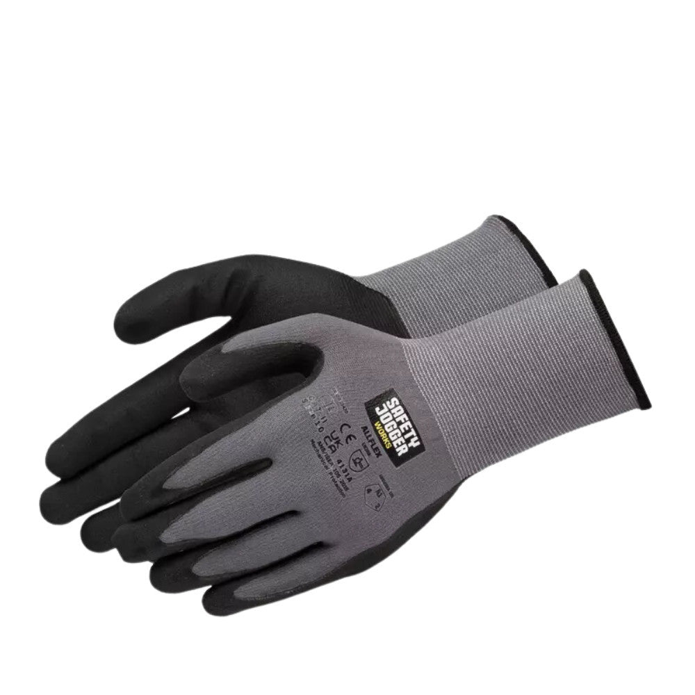 Maximum dexterity and sensitivity safety gloves for the most delicate handling The seamless ALLFLEX gloves of Safety Jogger are designed for light and delicate applications for which a maximum of agility and sensitivity are an absolute must. Excellent for delicate assembly and other light handling. Nylon spandex liner with black micro