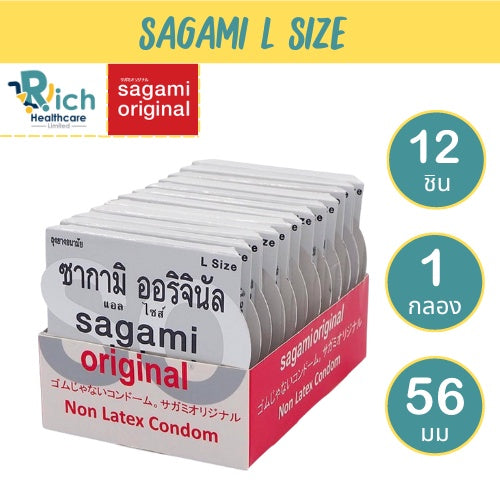 SAGAMI ไซซ์ L ถุงยางอนามัย ซากามิ ออรจินัล 002 ขนาด 56 มม. 12 ชิ้น