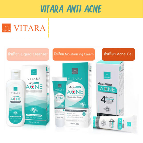 Vitara Anti Acne ไวทาร่า ( Liquid Cleanser / Moisturizing Cream / Acne Gel )