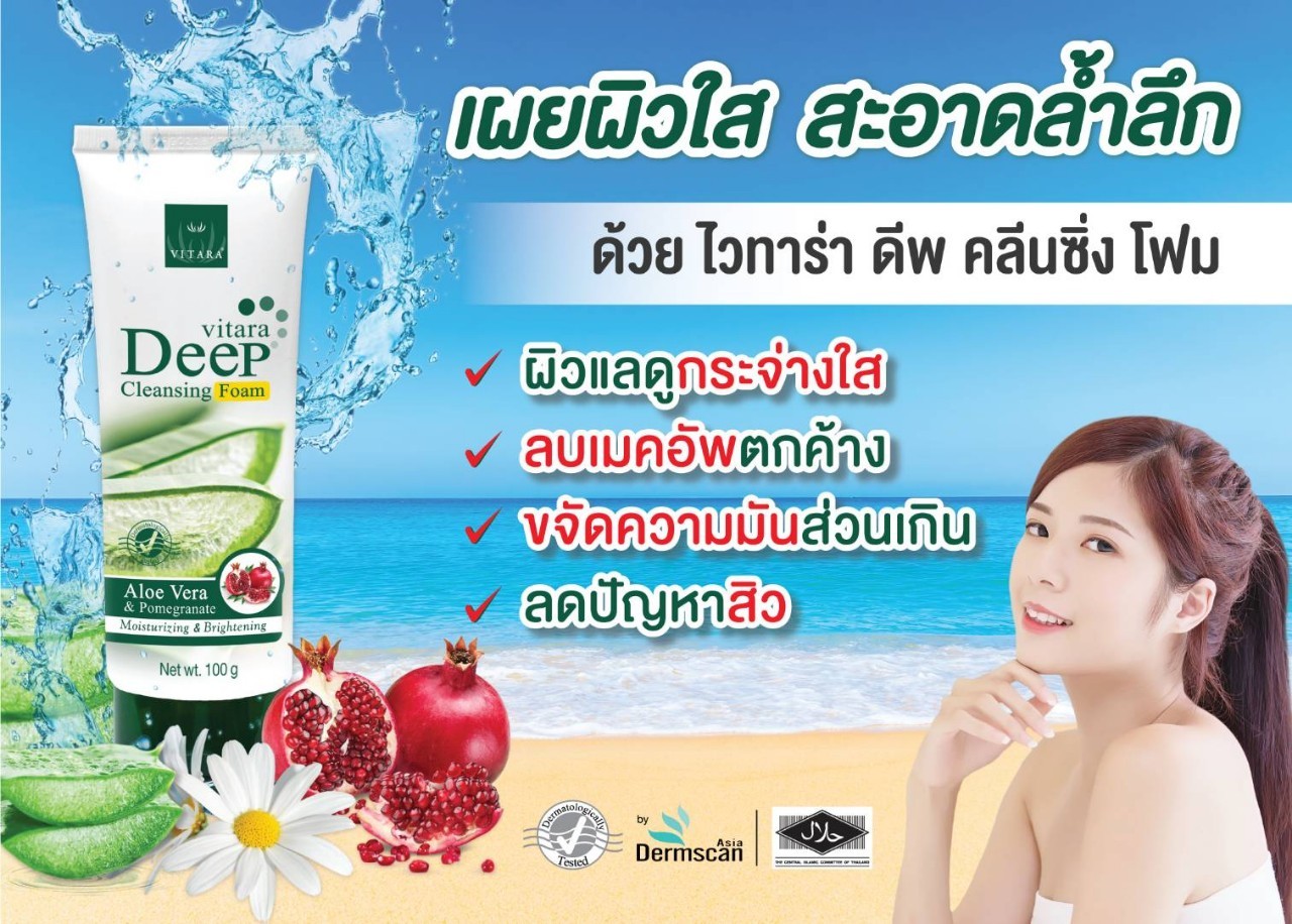 Vitara Deep Cleansing Foam : เนื้อโฟมละเอียดทำความสะอาดผิวหน้าได้อย่างล้ำลึก ช่วยกำจัดสิ่งสกปรกเครื่องสำอางที่ตกค้าง และความมันส่วนเกินบนใบหน้า ลดสาเหตุการเกิดสิวพร้อมเติมความชุ่มชื้นให้ผิว และบำรุงผิวแลดูกระจ่างใสเนีนยนุ่มน่าสัมผัส
